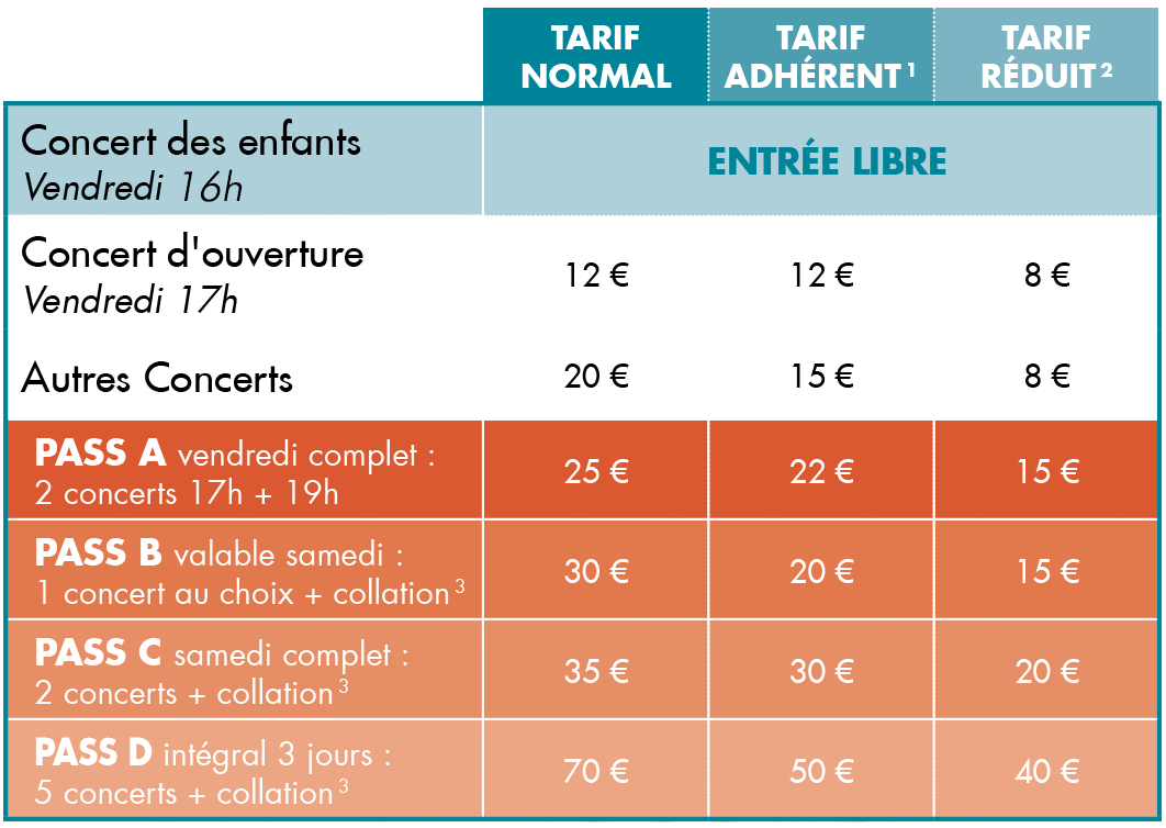 2 Tarif réduit : moins de 18 ans, étudiants, demandeurs d'emploi, minima sociaux. Gratuit pour les moins de 12 ans.
